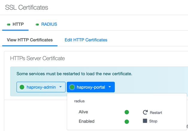 1. Navigate to System Configuration → SSL Certificates → Edit HTTP Certificates in the PacketFence admin portal